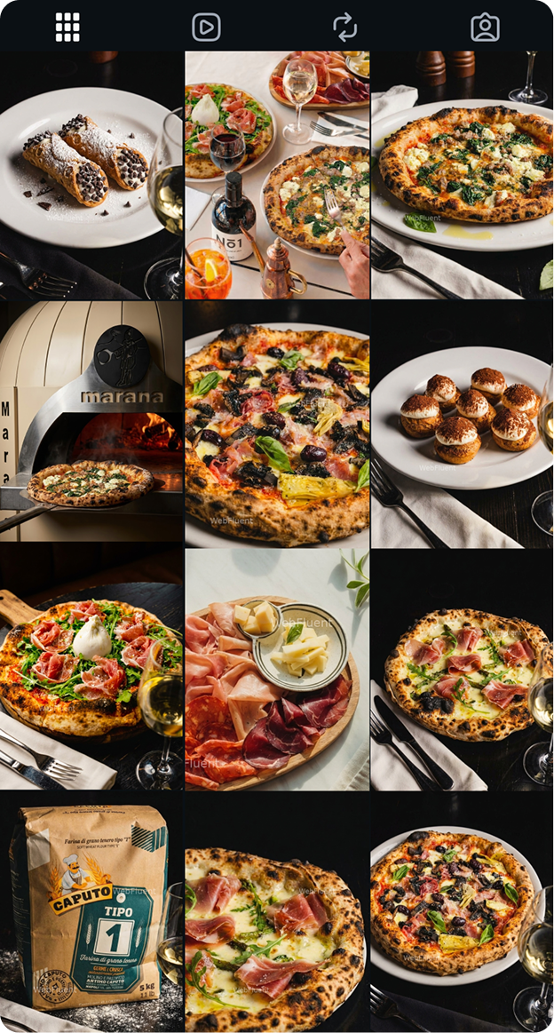 Instagram ready content including multi-dish scenes, multiple angles per dish & graphic posts.